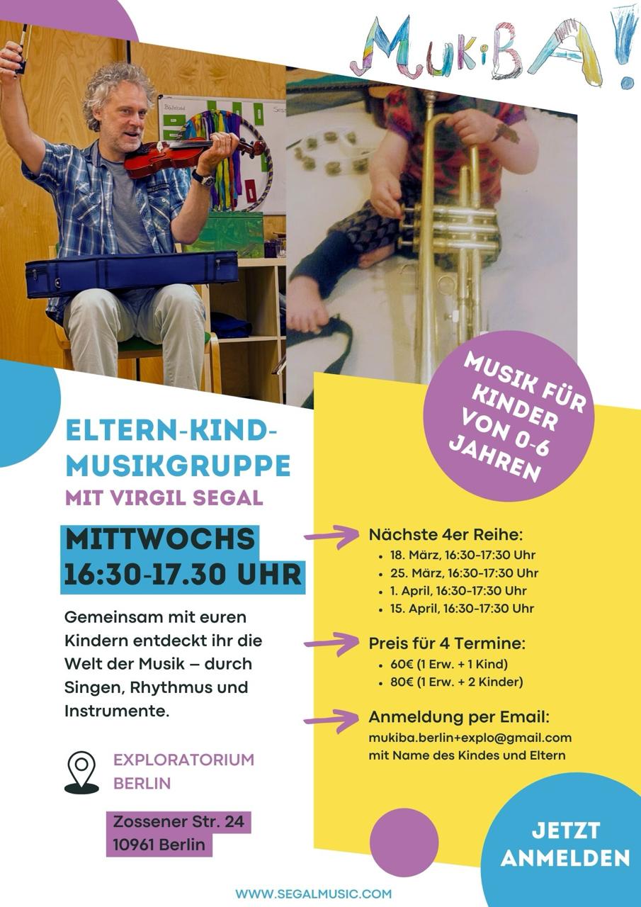 I am very pleased to present a NEW MuKiBa! Eltern-Kind Mitmach-Konzert Workshop in the EXPLORATORIUM, Zossener Str. 24, 10961 Berlin, Kreuzberg.